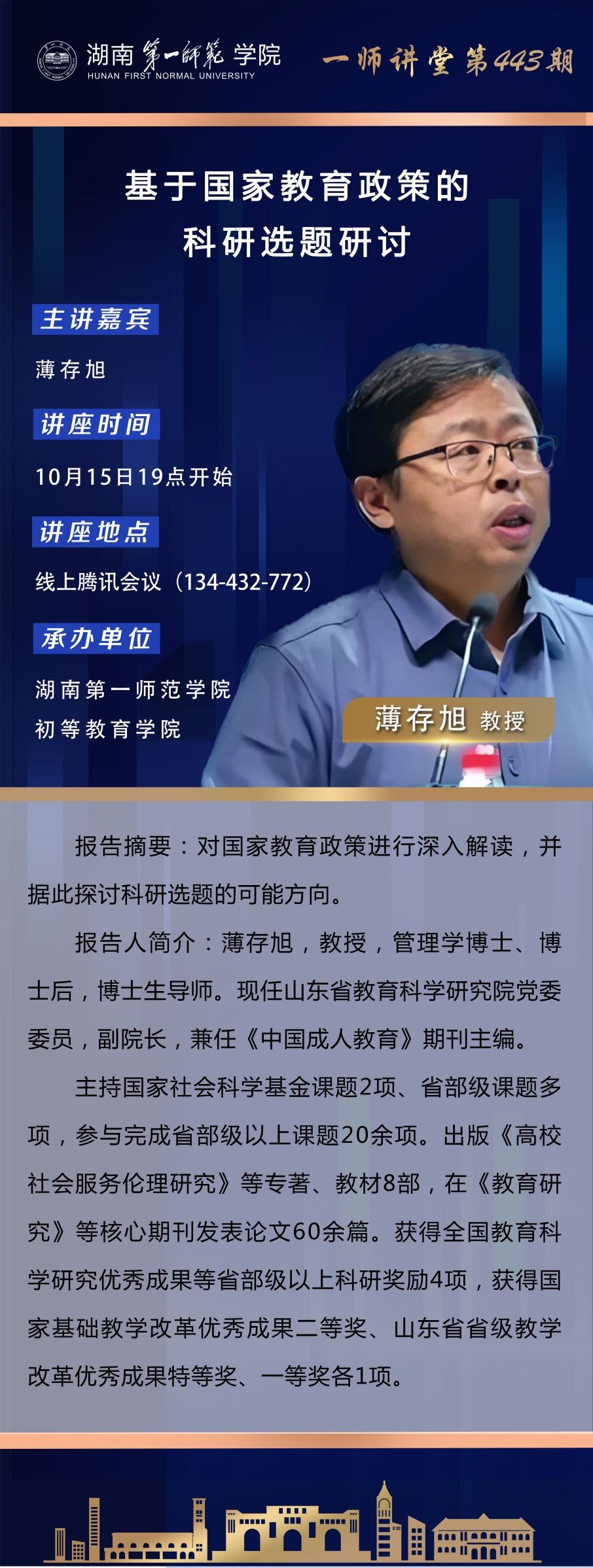 学术预告|一师讲堂第443期:基于国家教育政策的科研选题研讨