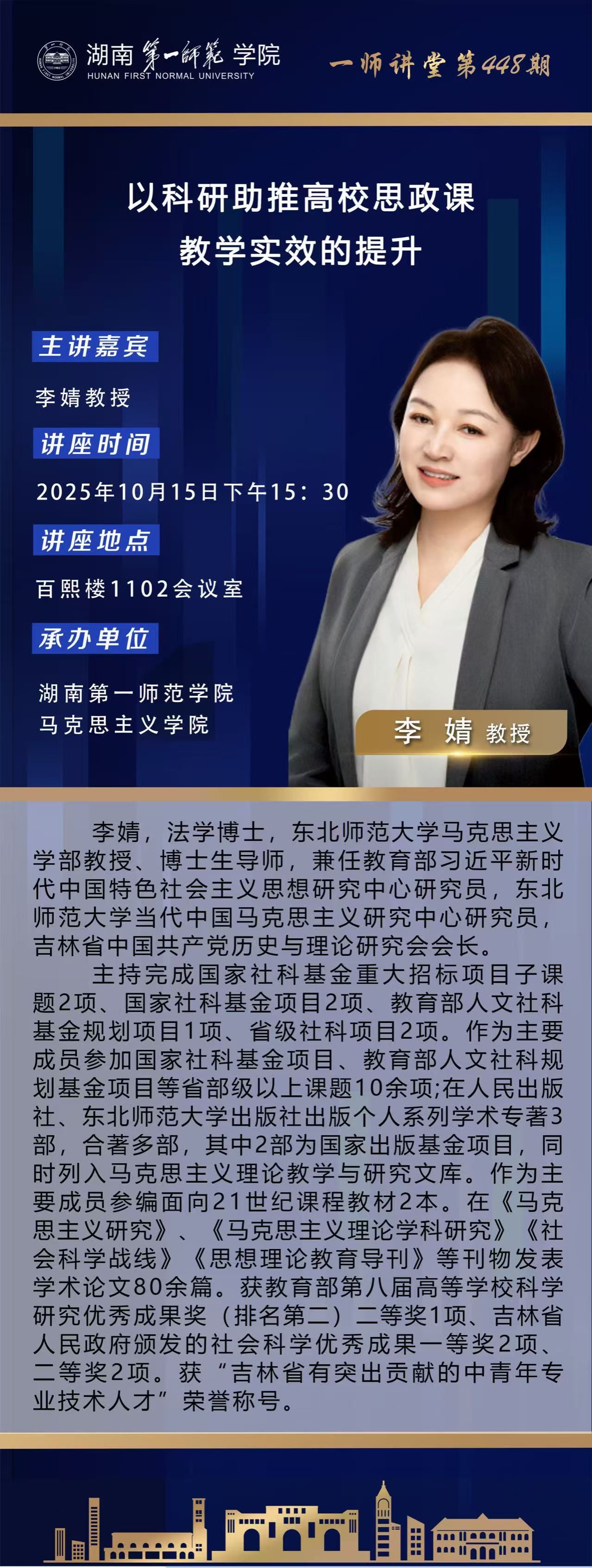 学术预告|一师讲堂第448期:以科研助推高校思政课教学实效的提升