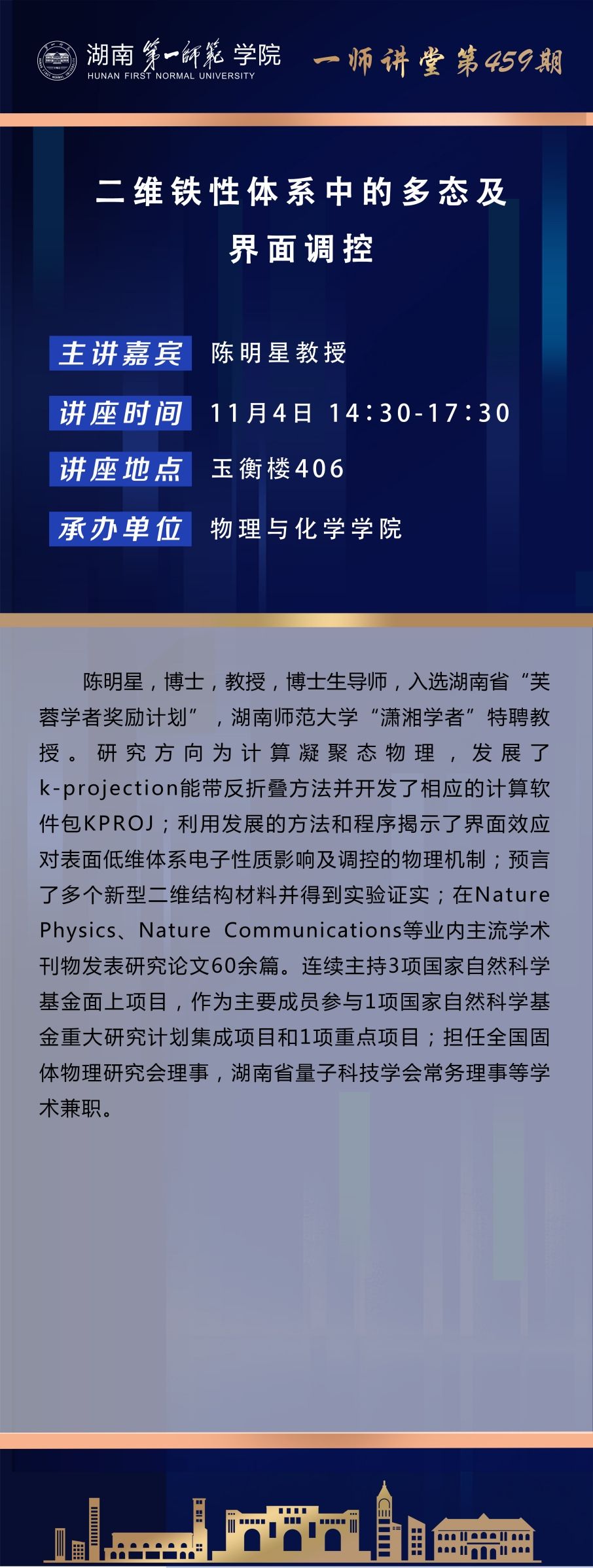 学术预告|一师讲堂第459期:二维铁性体系中的多态及界面调控