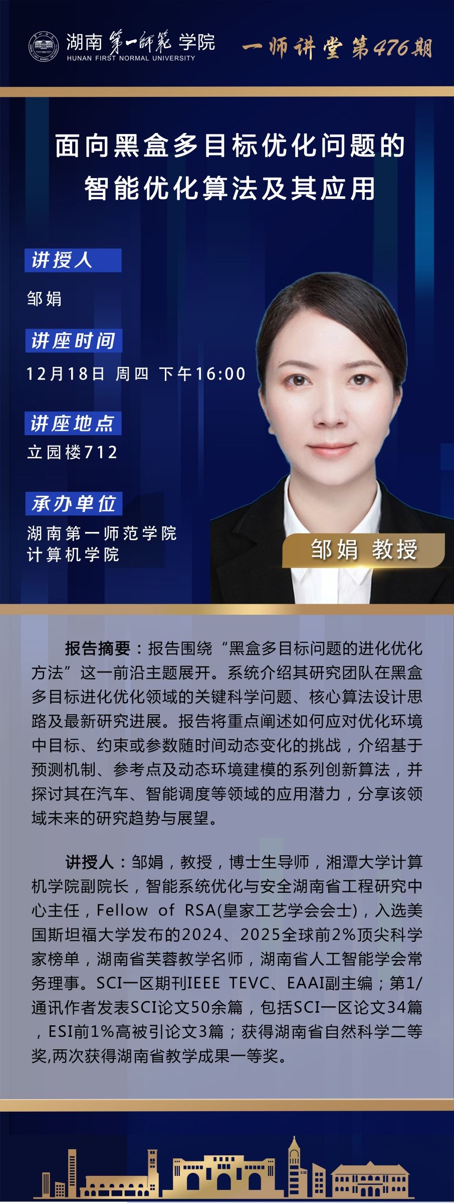 学术预告|一师讲堂第476期:面向黑盒多目标优化问题的智能算法及其应用