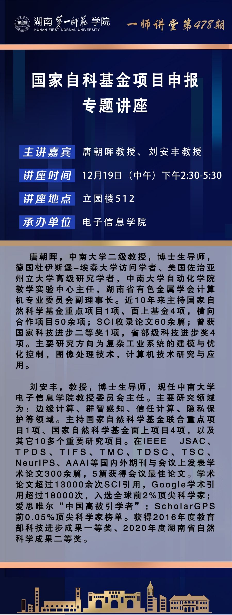 学术预告|一师讲堂第478期:国家自科基金项目申报专题讲座
