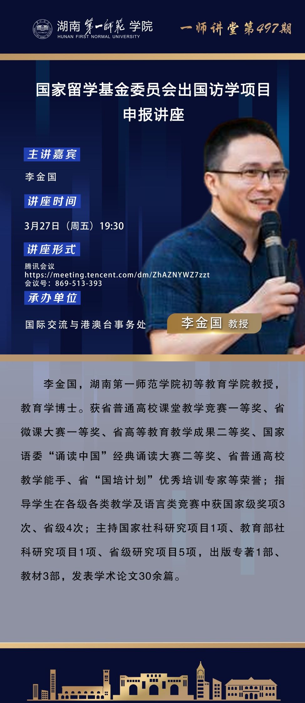 学术预告|一师讲堂第497期:国家留学基金委员会出国访学项目申报讲座