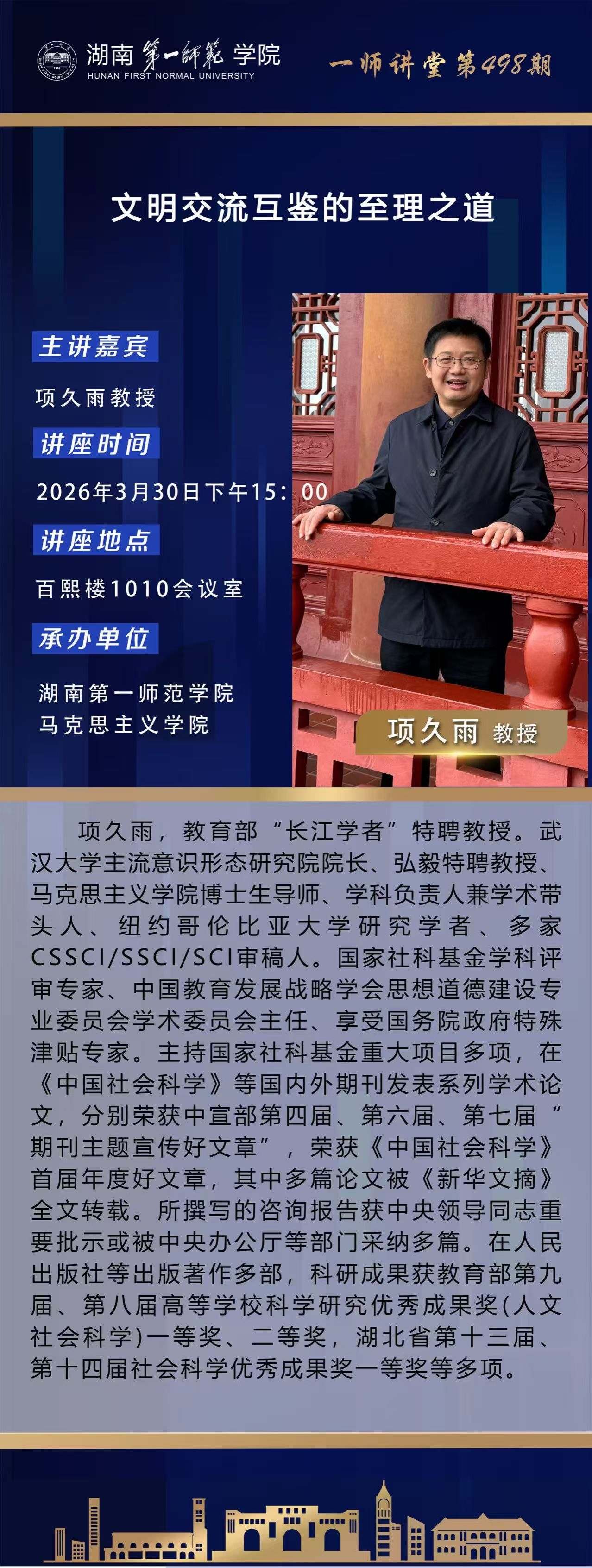 学术预告|一师讲堂第498期:文明交流互鉴的至理之道