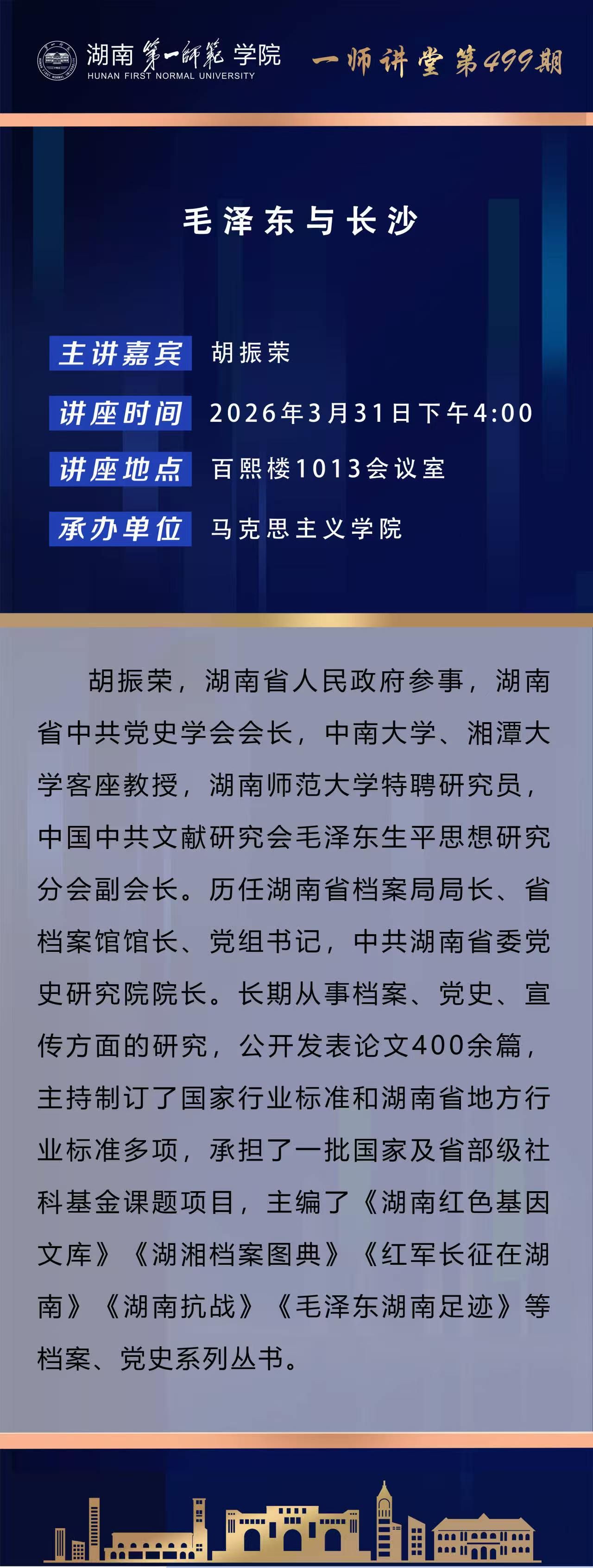 学术预告|一师讲堂第499期:毛泽东与长沙