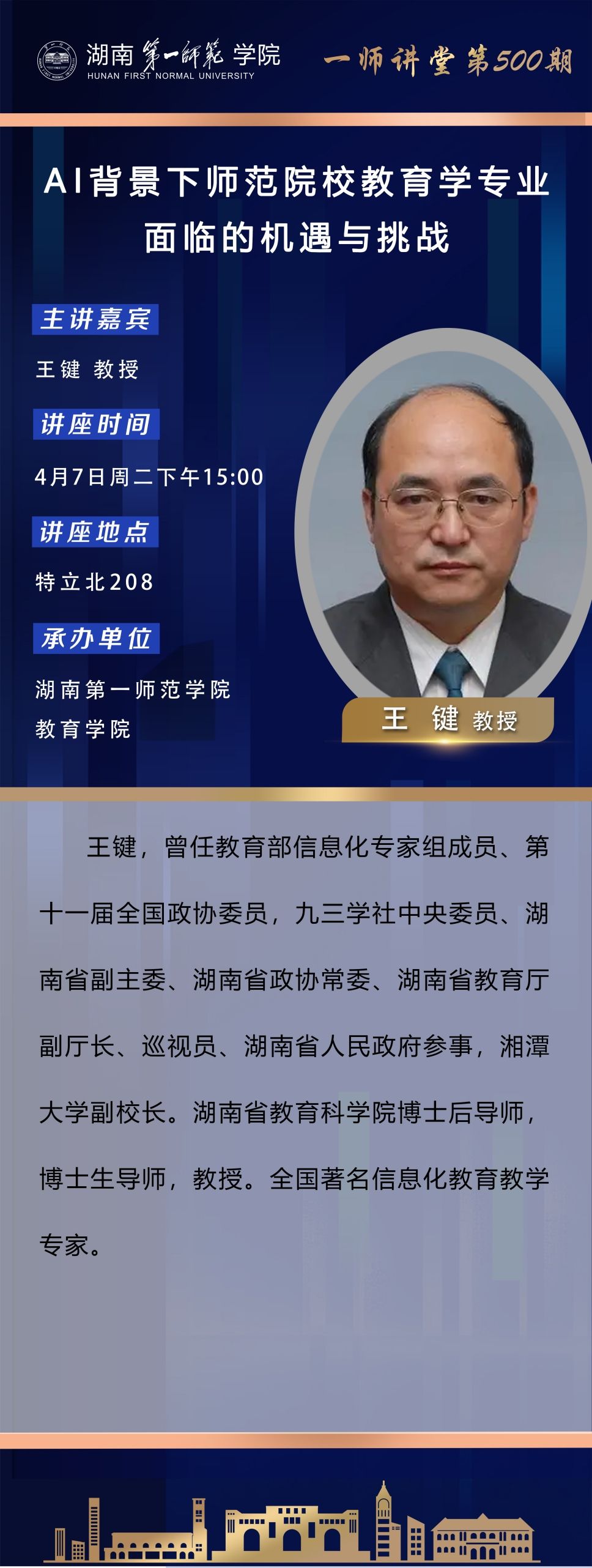 学术预告|一师讲堂第500期:AI背景下师范院校教育学专业面临的机遇与挑战