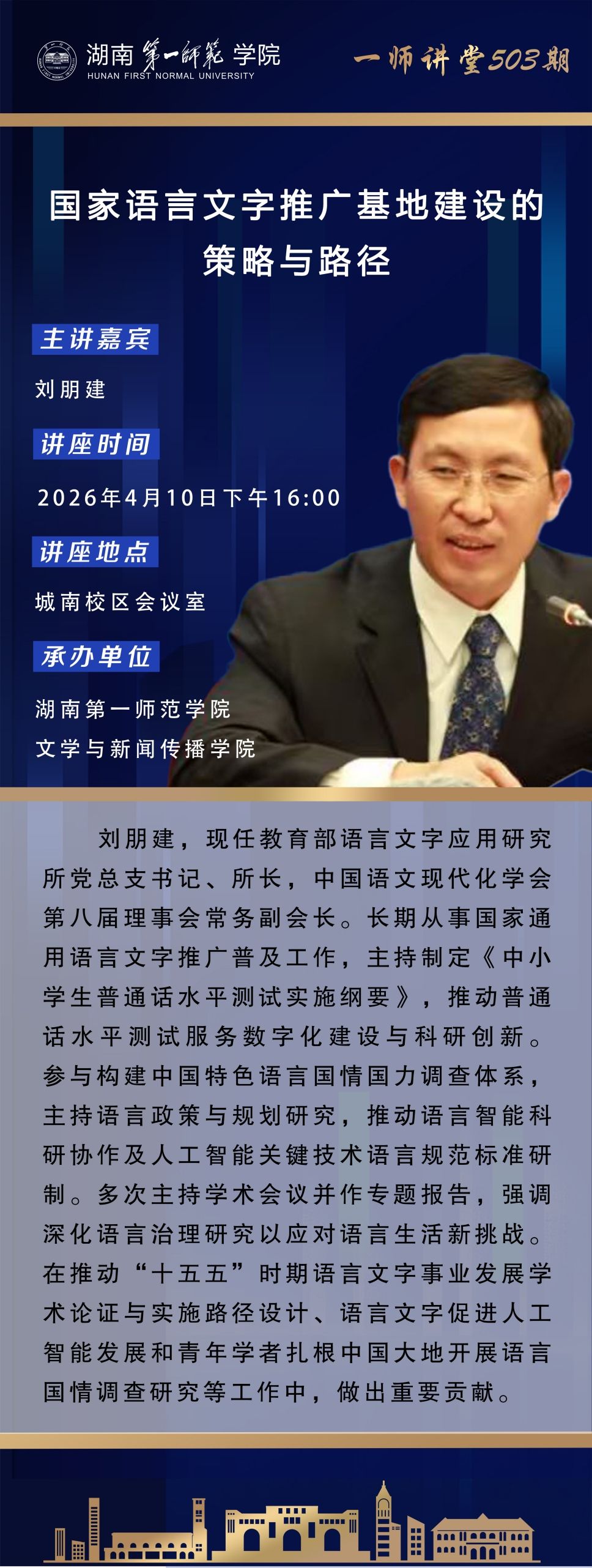 学术预告|一师讲堂第503期:国家语言文字推广基地建设的策略与路径