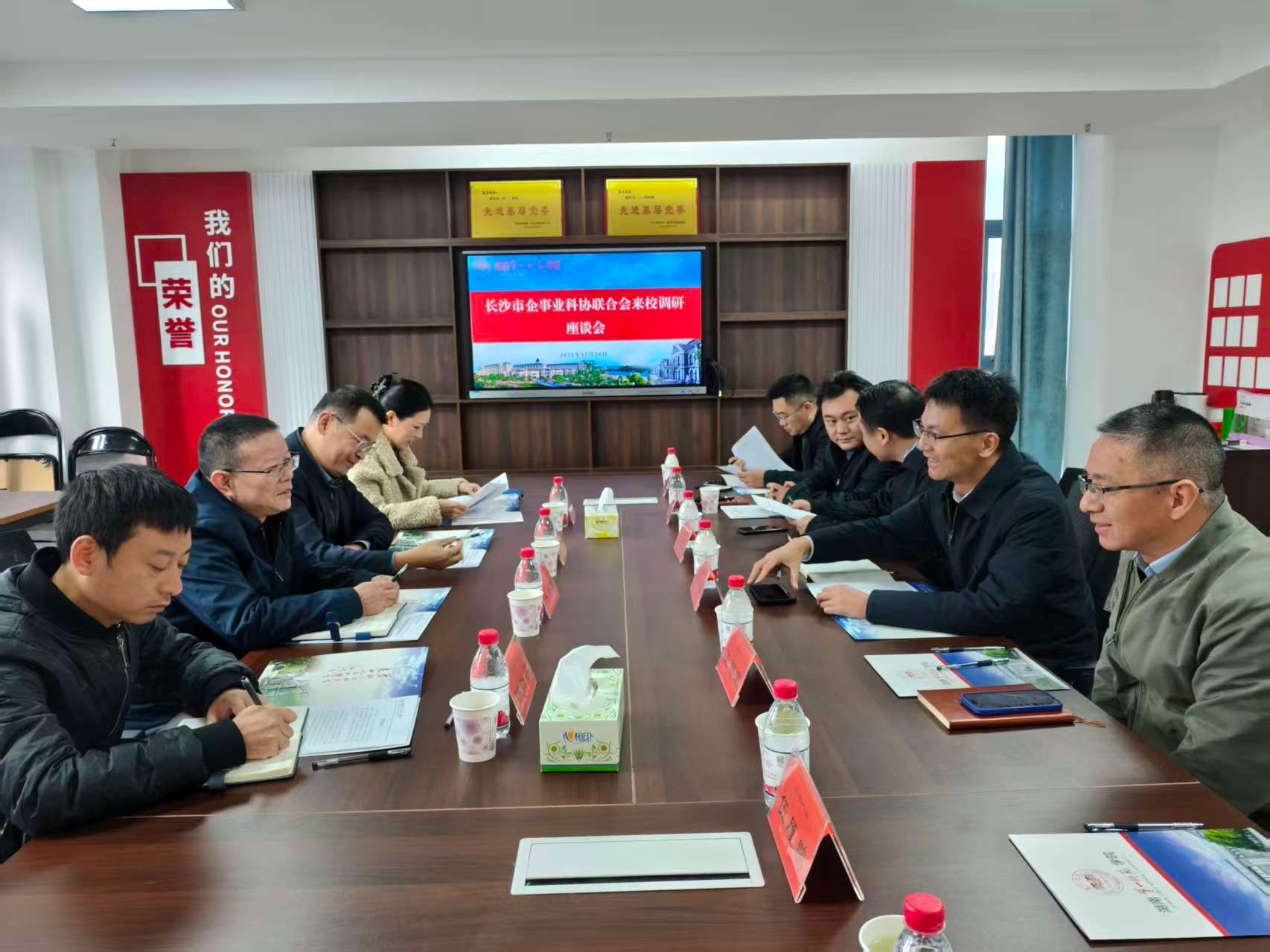 11月20日,长沙市企事业科协联合会执行会长卜功华一行4人来校调研,双方围绕高校科协组织建设、校企协同创新、“双师型教师”培养、大学生创新创业等核心议题开展座谈交流。会议由科研处处长肖攀主持。