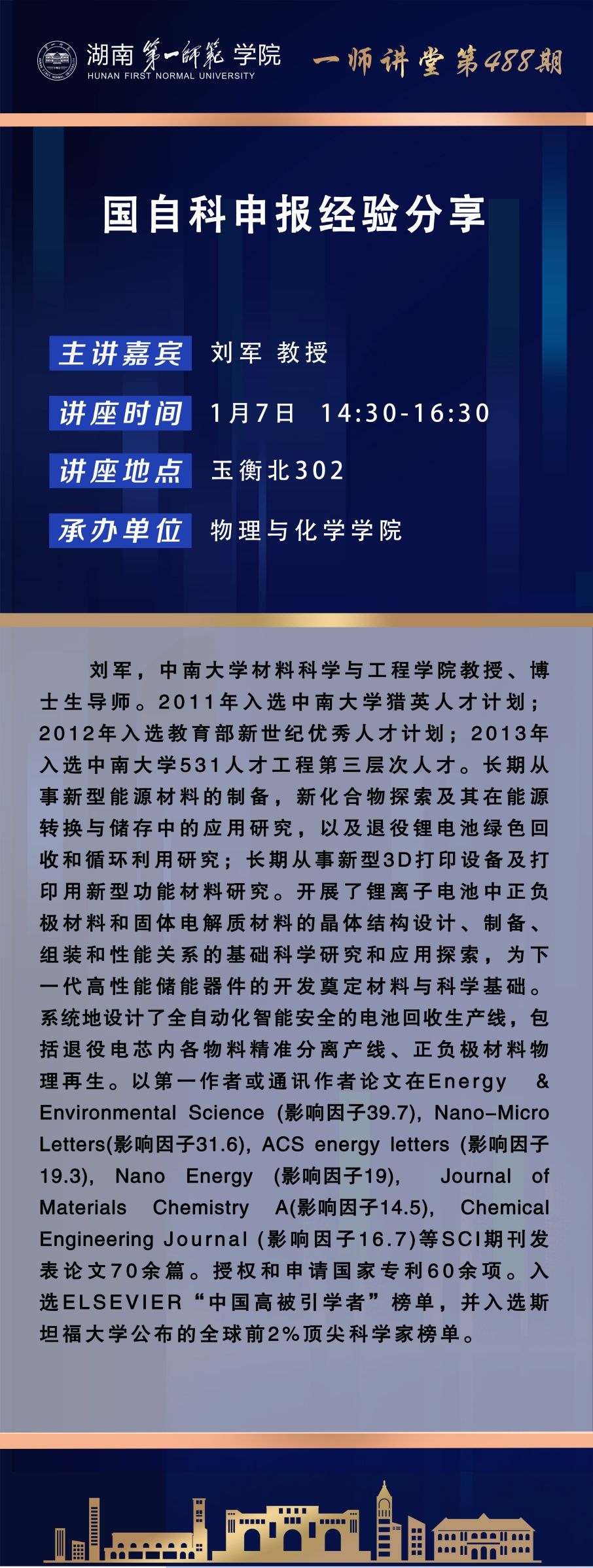 学术预告|一师讲堂第488期:国自科申报经验分享